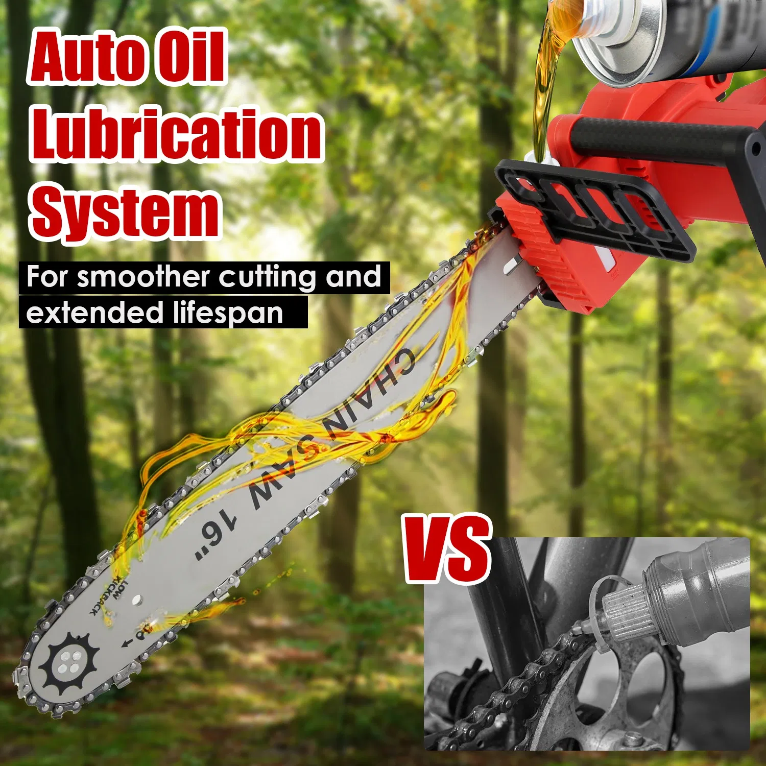*16' Chainsaw For Widely Use*:Upgraded cordless chainsaw supports maximum 16inch cutting diameter,allowing you to tackle larger branches and logs with ease. Suitable for a wide range of application,including tree trimming,wood cutting,branch pruning,firewood preparation,landscaping projects in yard,garden,farm,ranch,forest and more.