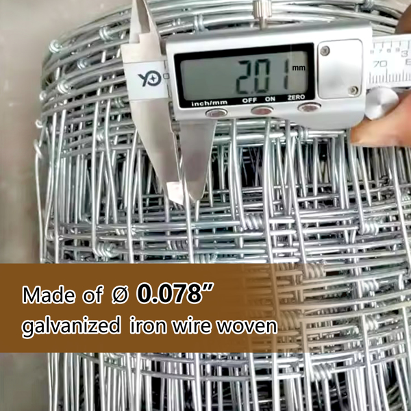 • 【Durable Material】The farm fence is crafted from high-quality steel wire with a diameter of 0.078 inches and features a hot-dip galvanized surface, ensuring long-lasting durability. This robust construction is designed to withstand harsh weather conditions, making it a reliable choice for long-term use.