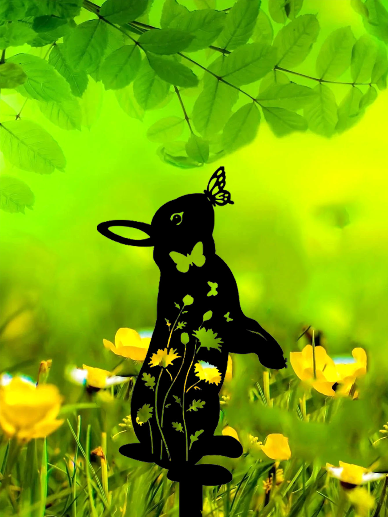 Metal Rabbit Garden Stake & Wall Sculpture - Outdoor Decorative Rabbit Statue, Cute Animal Silhouette Yard Art for Patio, Lawn, Flower Beds | Gardening Supplies, Spring Home/Outdoor Decor | Unique Christmas & Halloween Gift