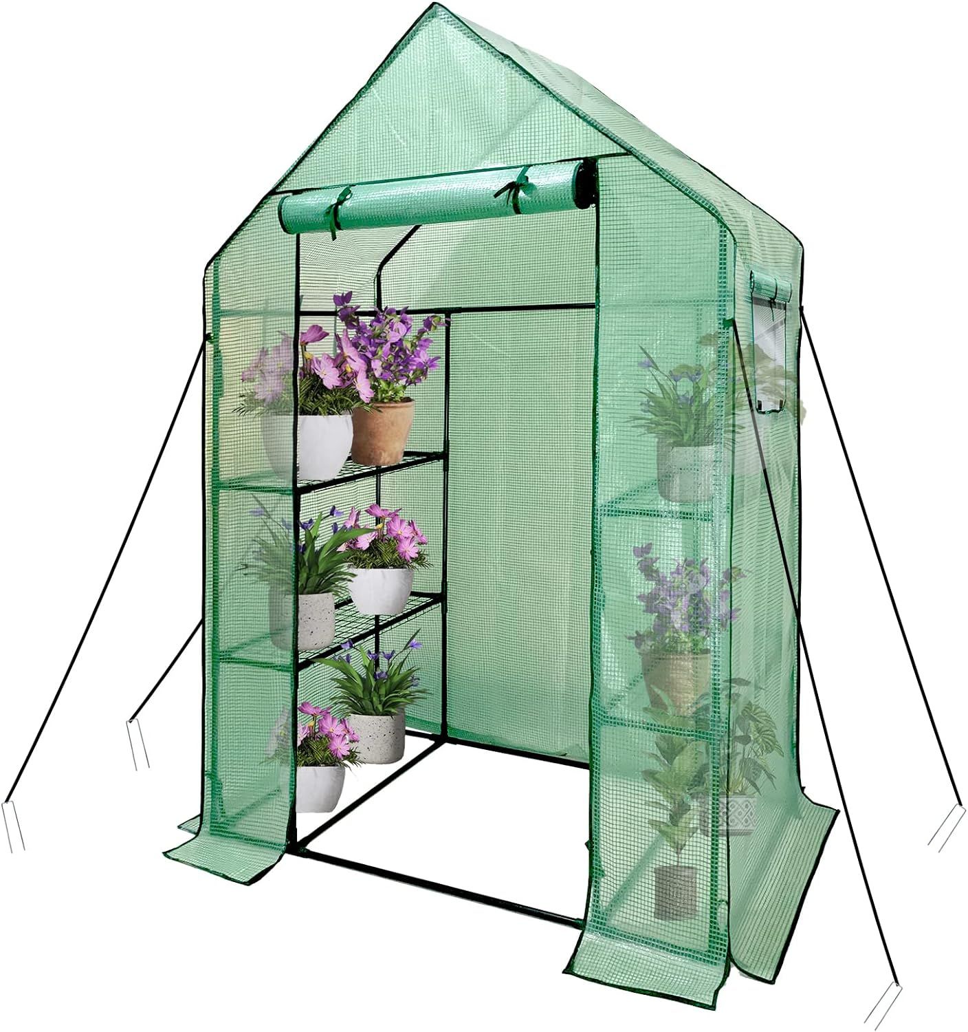 Walk In Greenhouse With Shelves,Walk-In Plant Green House With Durable Green PE Cover, 3 Tiers 6 Shelves Stands with Ground Pegs & Ropes for Stability Walk In Greenhouse With Shelves,Walk-In Plant Green House With Durable Green PE Cover, 3 Tiers 6 Shelves Stands with Ground Pegs & Ropes for Stability Walk In Greenhouse With Shelves,Walk-In Plant Green House With Durable Green PE Cover, 3 Tiers 6 Shelves Stands with Ground Pegs & Ropes for Stability