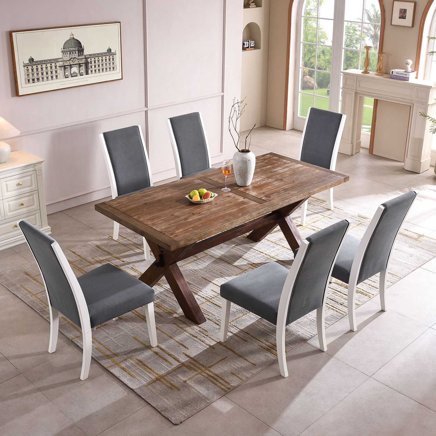 1.THE ART OF WOODEN CRAFTSMANSHIP: Enjoy a taste of the countryside in high style. Dining Table is made of fir and pine wood in the process of Vintage wire drawing.