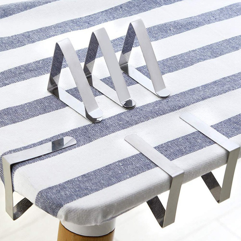 2.Table cover clamps material: These table cloth holders are made of stainless steel, strong and durable, rust resistant, you can use them repeatedly, serve for a long time.