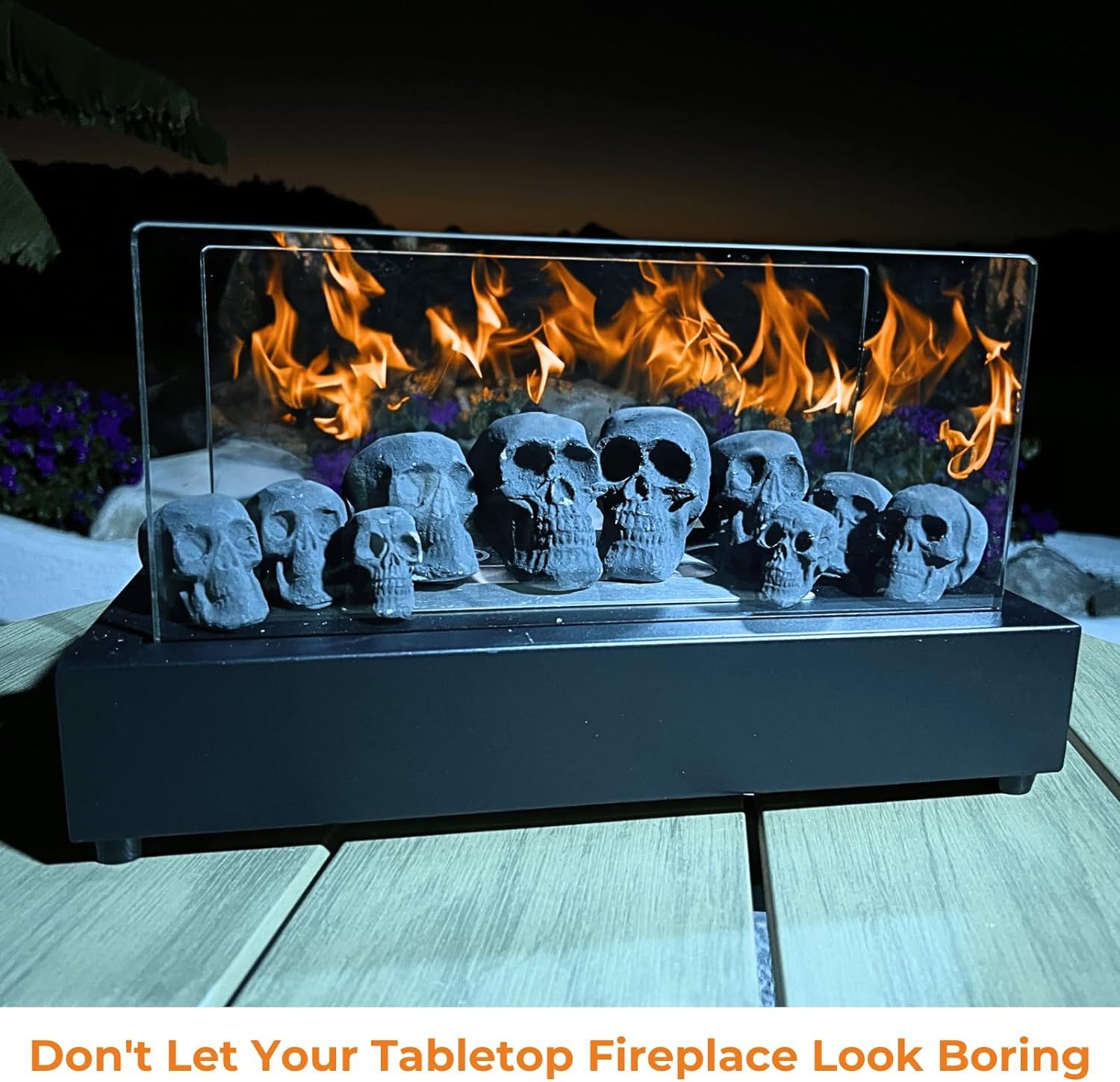 4.Don't you want to make your tabletop fireplace stove more cool? The Handmade Skull fire Log with a Tabletop Fireplace can create an unforgettable visual experience. Use it as a focal point for gatherings or parties, and watch as everyone is captivated by its realistic appearance.