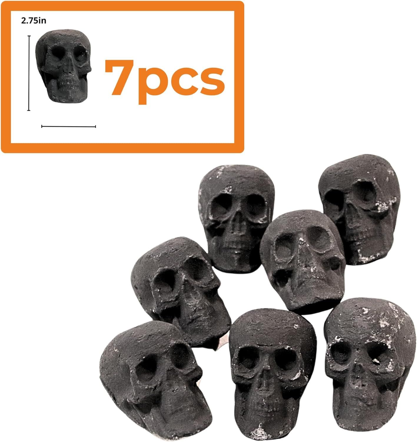 7pcs skull gas logs set: "7 x 5 x 7cm" firepit skulls large.