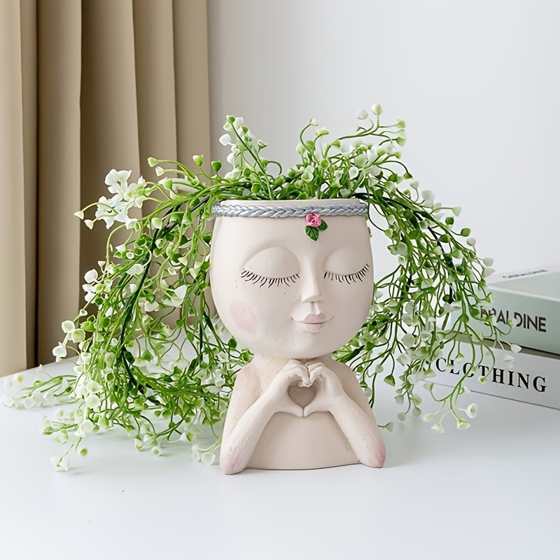 1pc Figure Flower Pot; Women Face Statue Vase Planter Ornaments; For Indoor Outdoor Home Decor Garden Patio (4.7*7.3*3.4in)