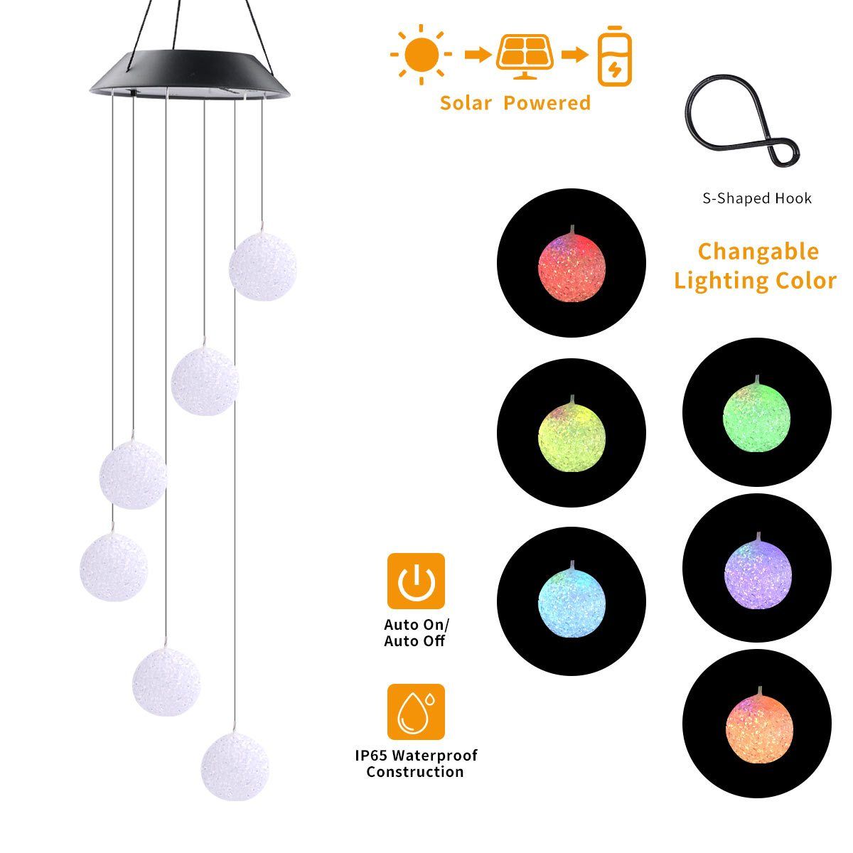 Home > GANGES SA Solar Color-Changing Wind Chime Hanging Light; Led Wind Chime Light With Hanging Chestnut Balls; Festive Decoration