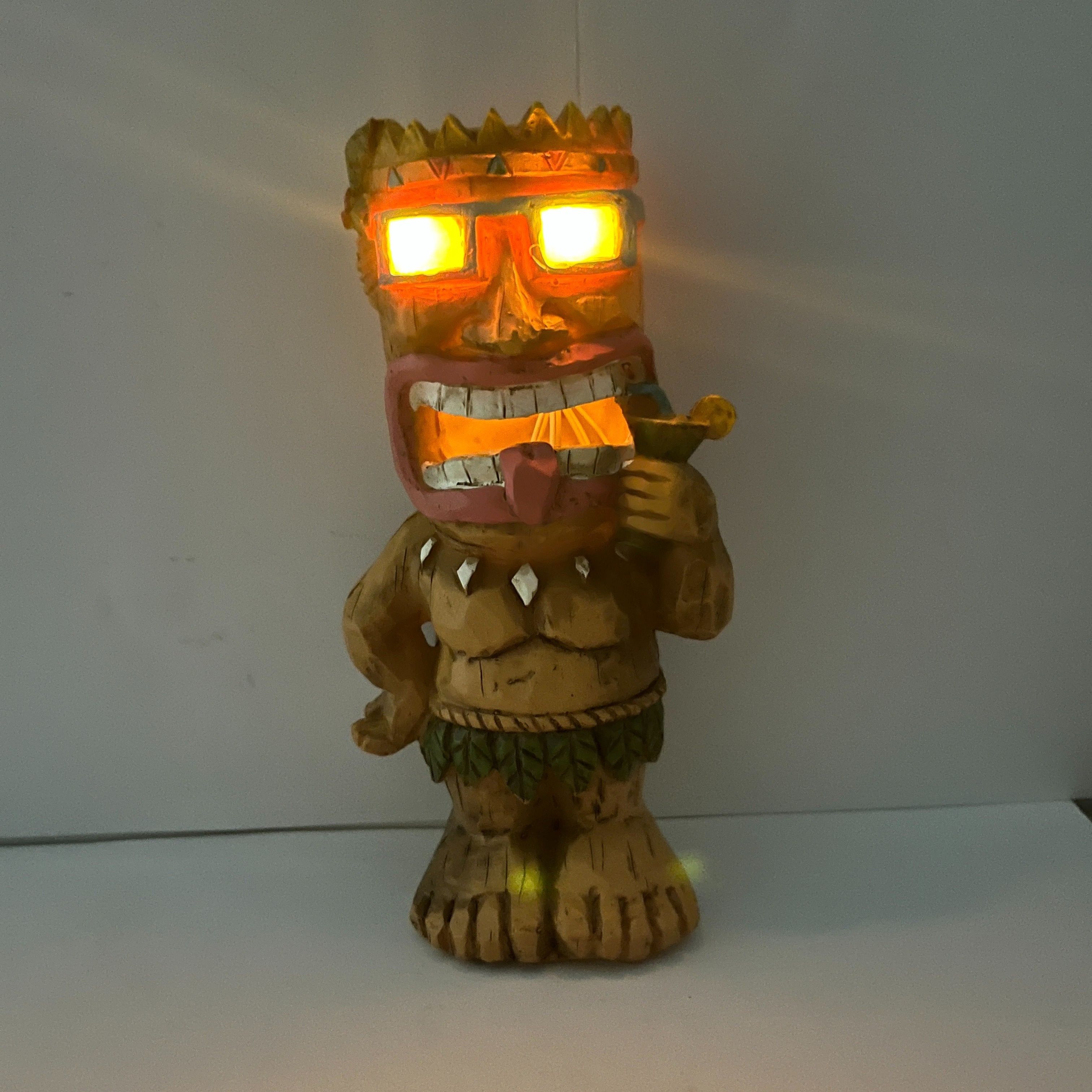 1pc, Drum Tiki Solar Light For Home And Outdoor Decor, Drum Tiki Solar Powered Flickering LED Garden Light Backyard Bongo Tiki Halloween Decoration