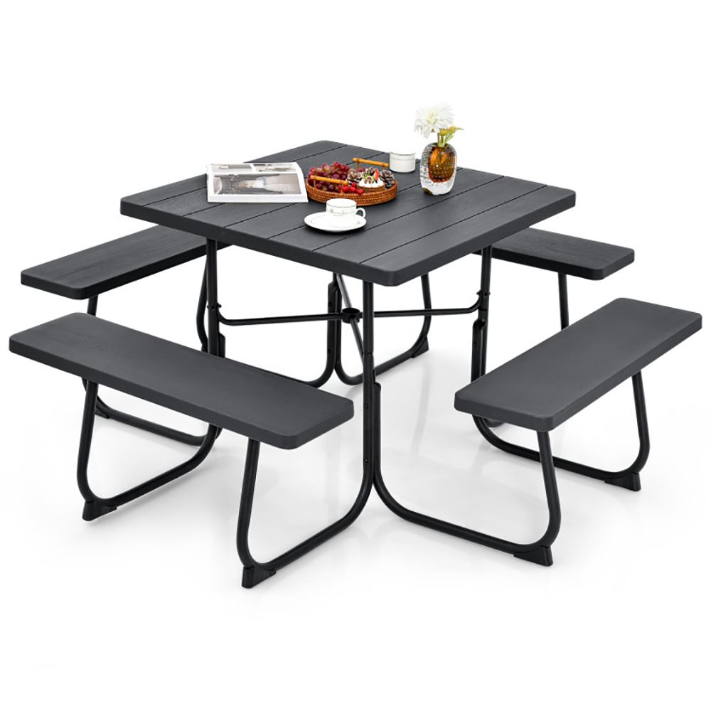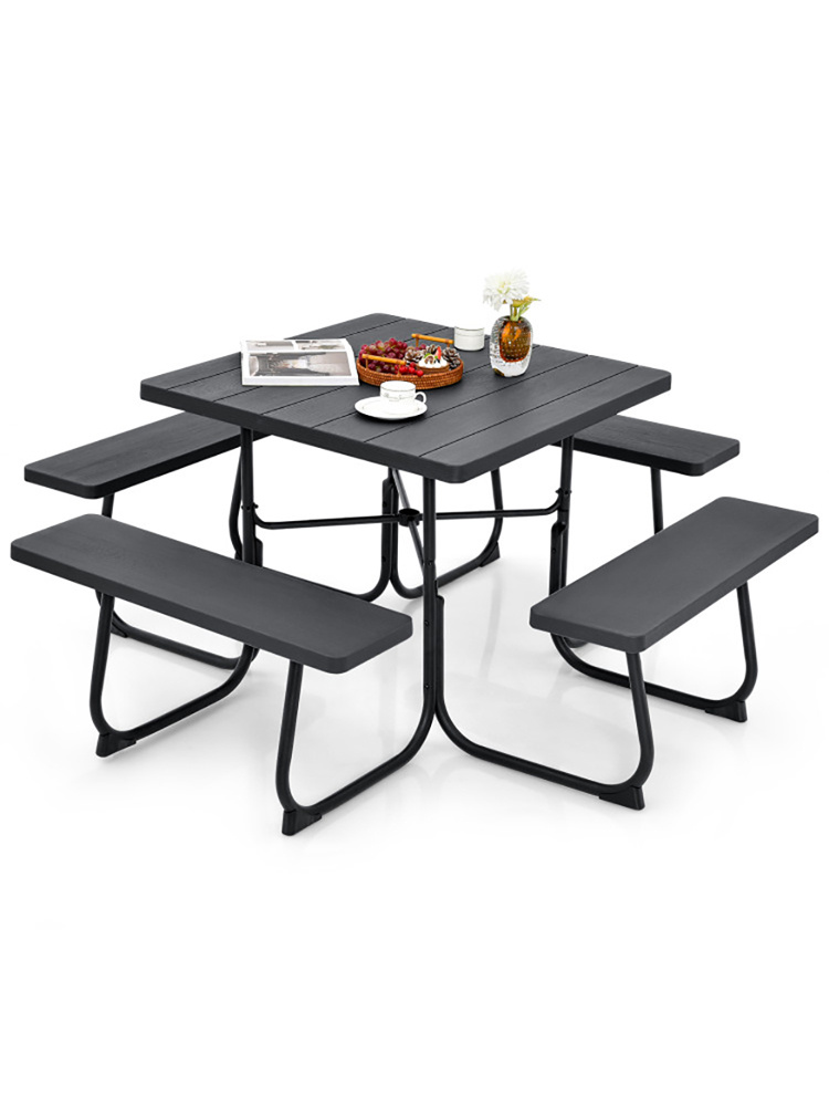 1.Built-in Benches and Spacious Tabletop: This square picnic table is designed with four built-in benches, providing ample seating for up to 8 people. Besides, the large tabletop offers plenty of space for food, drinks, and other essentials.