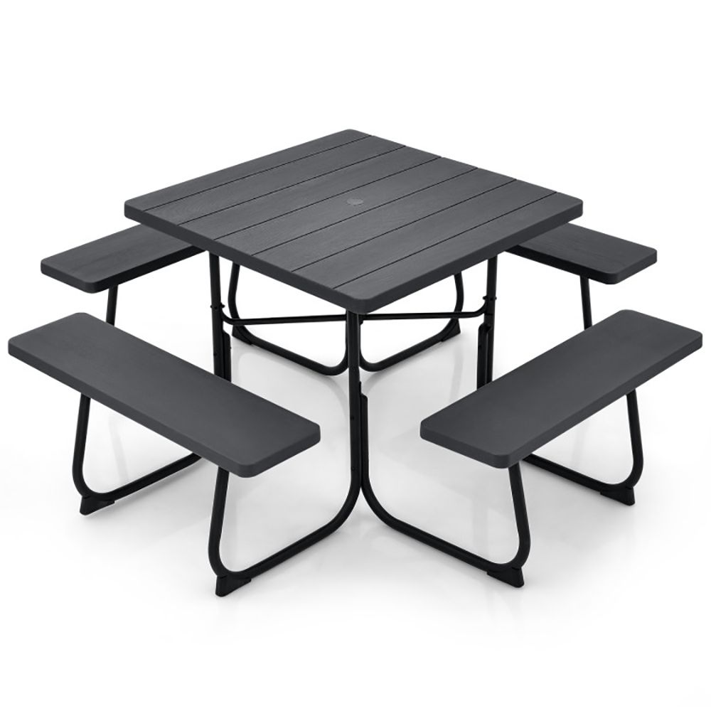Outdoor Picnic Table with 4 Benches and Umbrella Hole